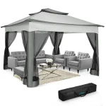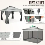 【Easy set up & Pinch-free setup】This easy-up gazebo tent can be assembled without extra tools for one person in 10min, gazebo has 3 heights setting 98.4in/250cm 、102in/260cm、105.6/270cm(the roof to the bottom), comfort grip locks canopy in places when extend poles, and equip detailed installation videos and manuals for guidance.